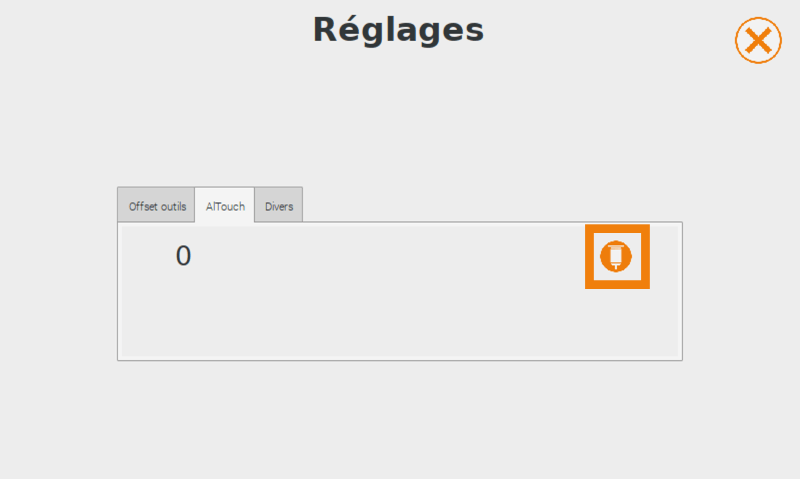 L’onglet AlTouch permet de lancer la séquence de palpage de la surface d’impression en cliquant sur l’icône (PALPEUR).