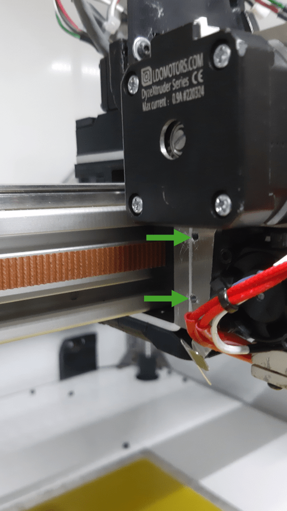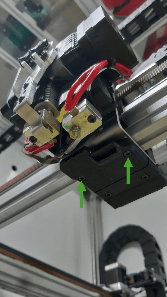 Le bloc extrudeur est fixé sur le chariot via l’extrudeur de gauche, l’extrudeur de droite étant fixé sur l’extrudeur de gauche.