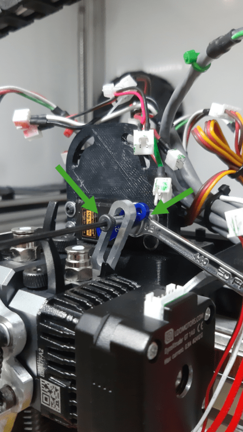 Fixez à nouveau le levier de l’extrudeur et vérifiez l’alignement et la rotation des 2 pignons.