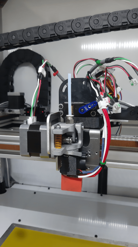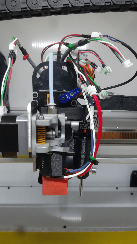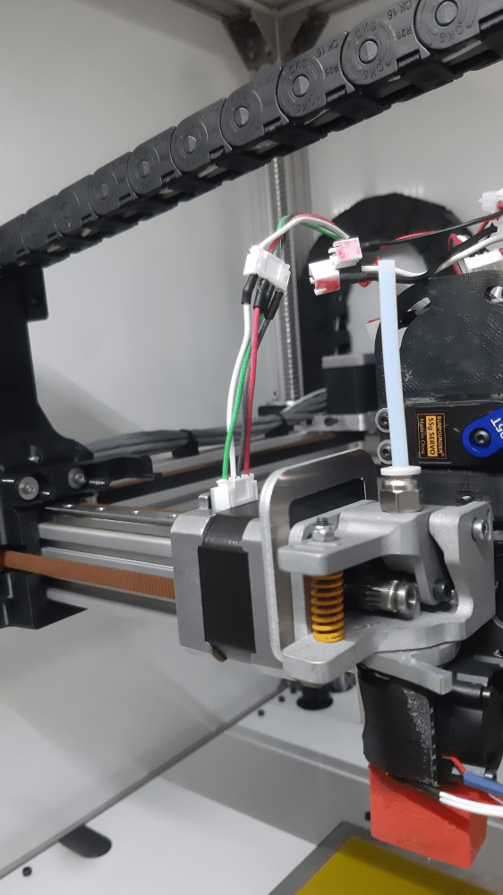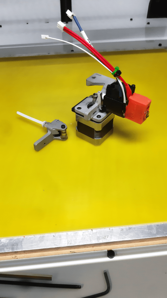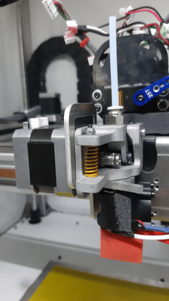 La position de la rondelle dentée sur le tube PTFE est ajustée directement sur la tête d’impression, elle-même fixée sur l’extrudeur !