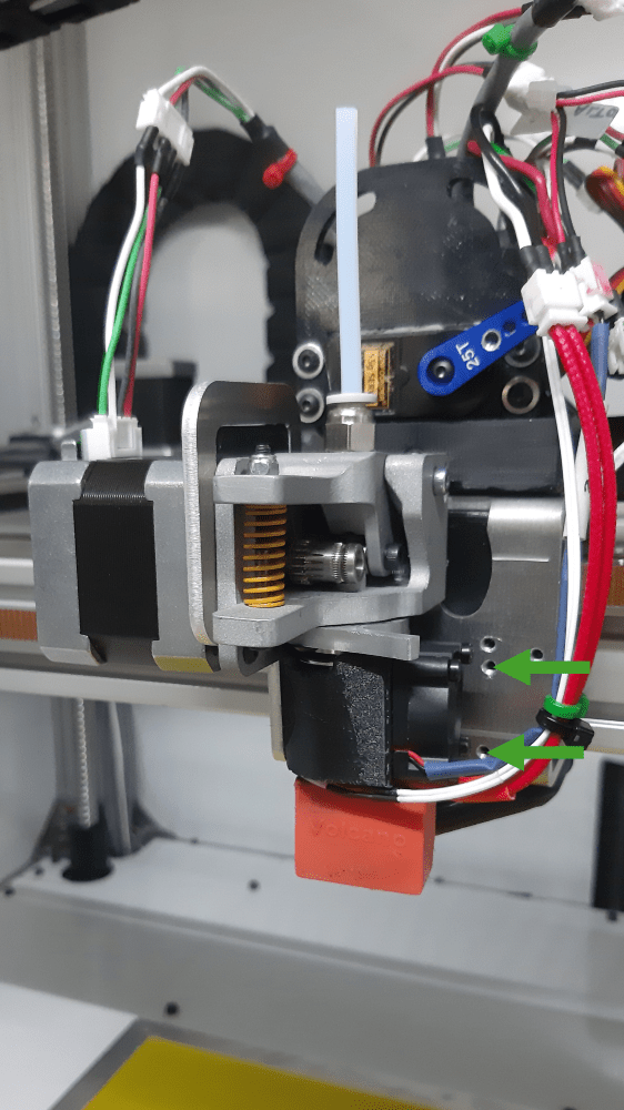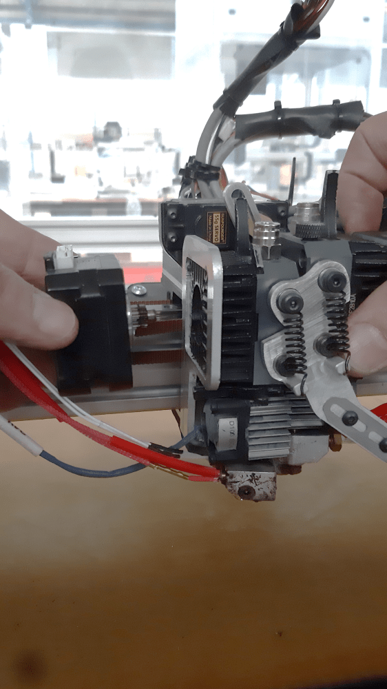 Pour retirer le bloc extrudeur DUAL, il faut donc procéder de la même façon que pour une imprimante 3D simple extrusion, à la différence que les vis M3 sont plus difficiles d’accès et ne peuvent pas être libérées totalement.