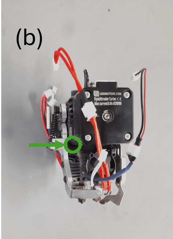 Contrôlez visuellement que la totalité du tube PTFE a été retirée du barrel ; sinon retirez la matière à l’aide d’un outil fin, tel qu’une clé allen 1,5 mm.