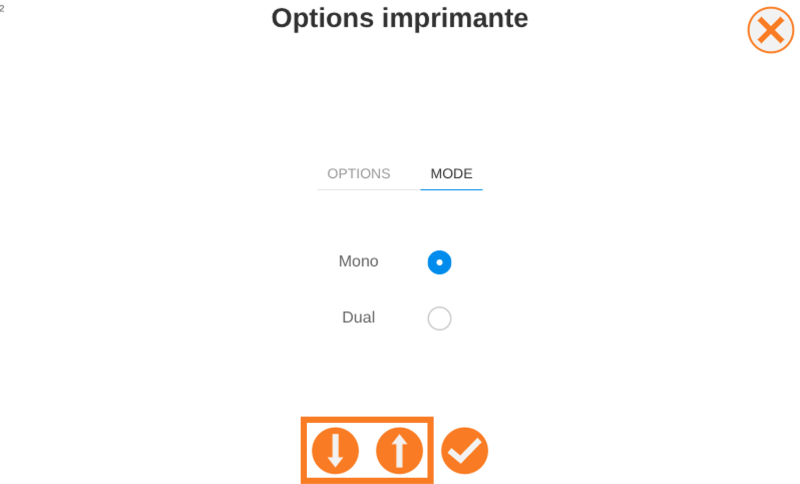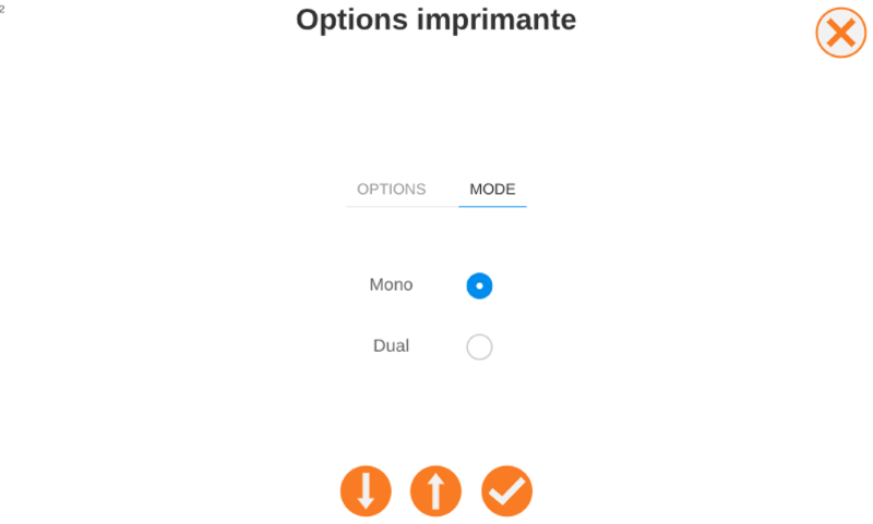La fenêtre « Imprimante » donne accès à 2 onglets : OPTIONS et MODE.