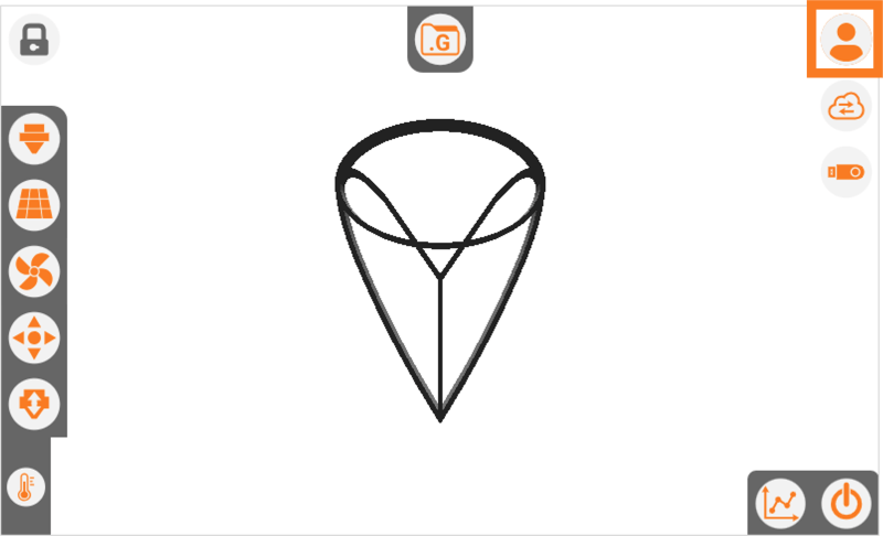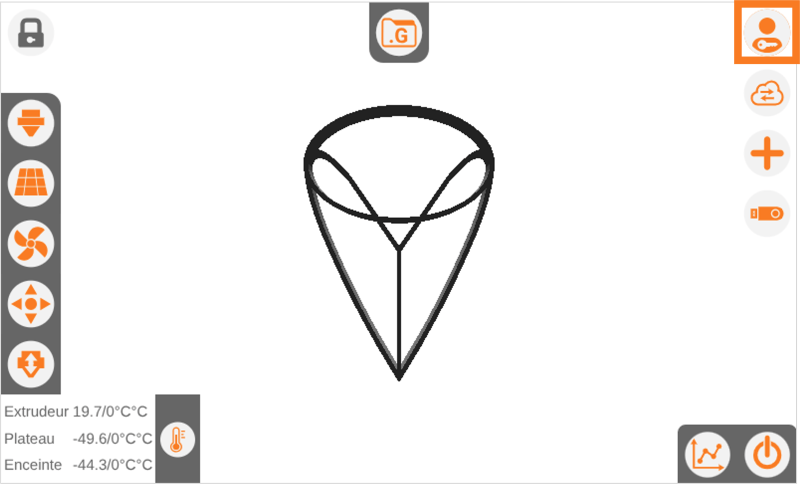 Cette icône permet de gérer le réseau sur lequel connecter l’imprimante 3D (ETHERNET ou WIFI).