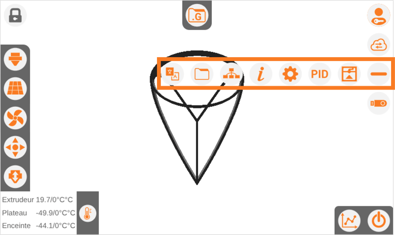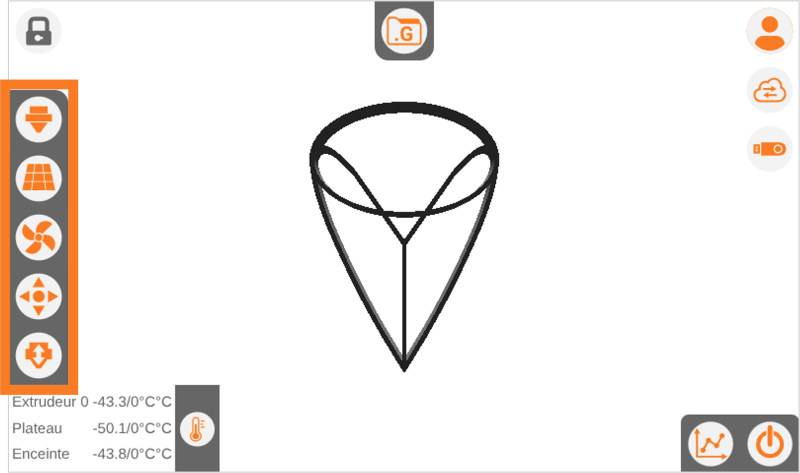 L’icône (EXTRUDEUR OFF) stoppe la chauffe de l’extrudeur en amenant la température consigne à 0°C.