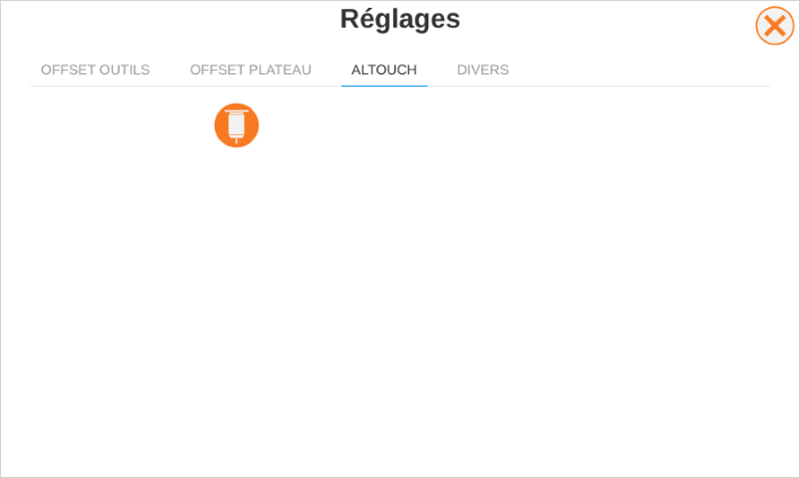 Une fois le palpeur installé, l’onglet AlTouch permet de lancer la procédure qui permettra de générer une nouvelle cartographie de la surface d’impression en appuyant sur l’icône (ALTOUCH).