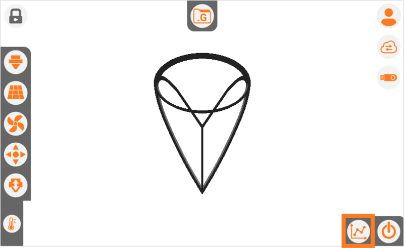 Cette icône ouvre une fenêtre affichant les statistiques d’utilisation de l’imprimante 3D.